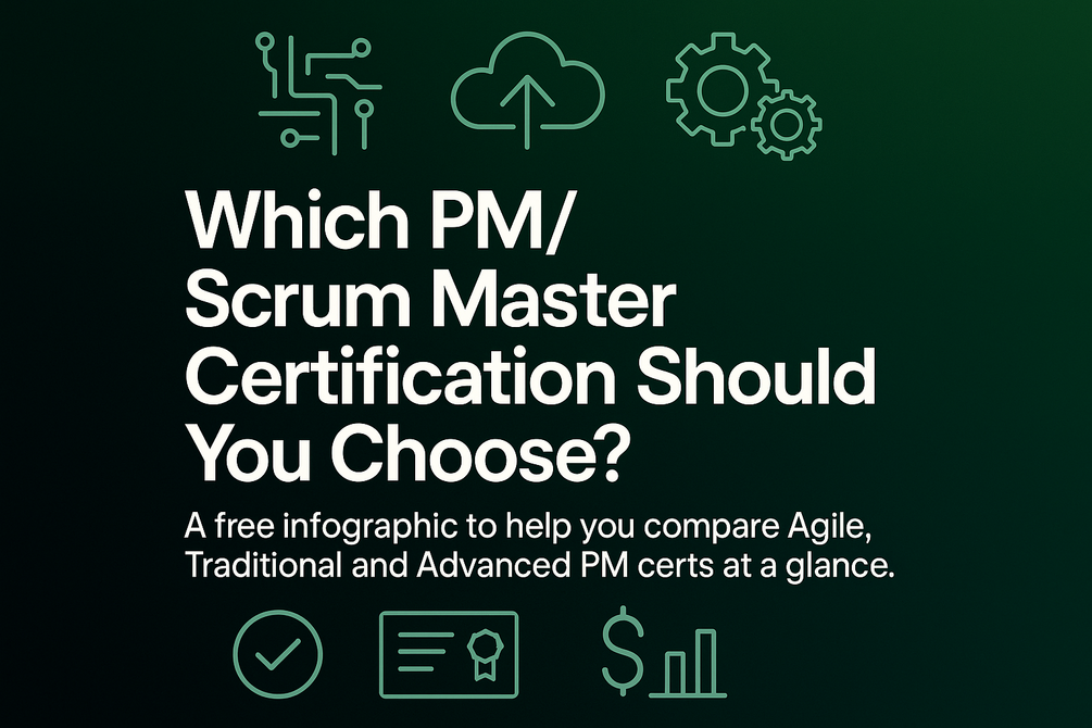 A one-page visual guide to help you choose the right project management certification - faster. Compare Agile, Traditional and Advanced PM certs at a glance: cost, difficulty, best fit and more. Clean. Clear. No jargon.